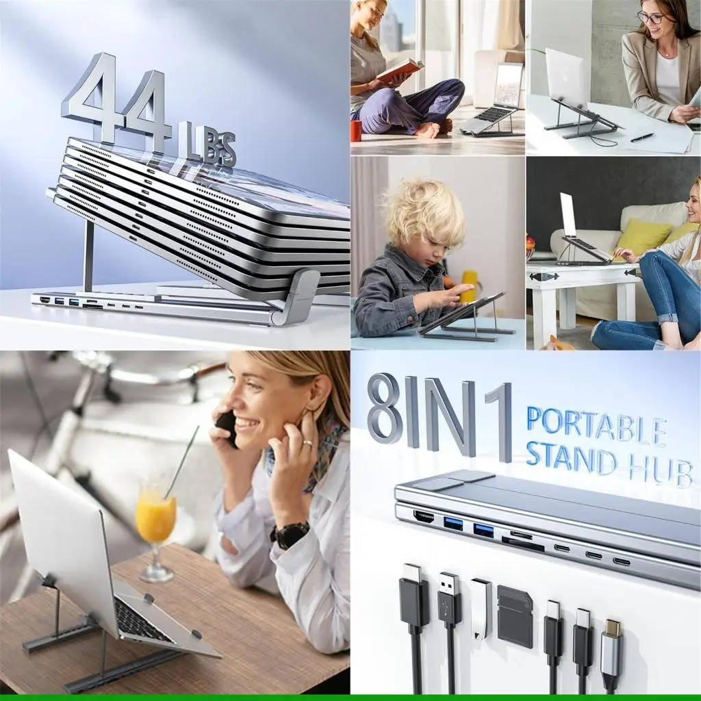 | Lenovo 노트북 Macbook Pro Air 노트북 용 금속 접이식 노트북 스탠드 미끄럼 방지 브래킷 홀더 조정 가능한 보이지 않는 냉각 피트 | |