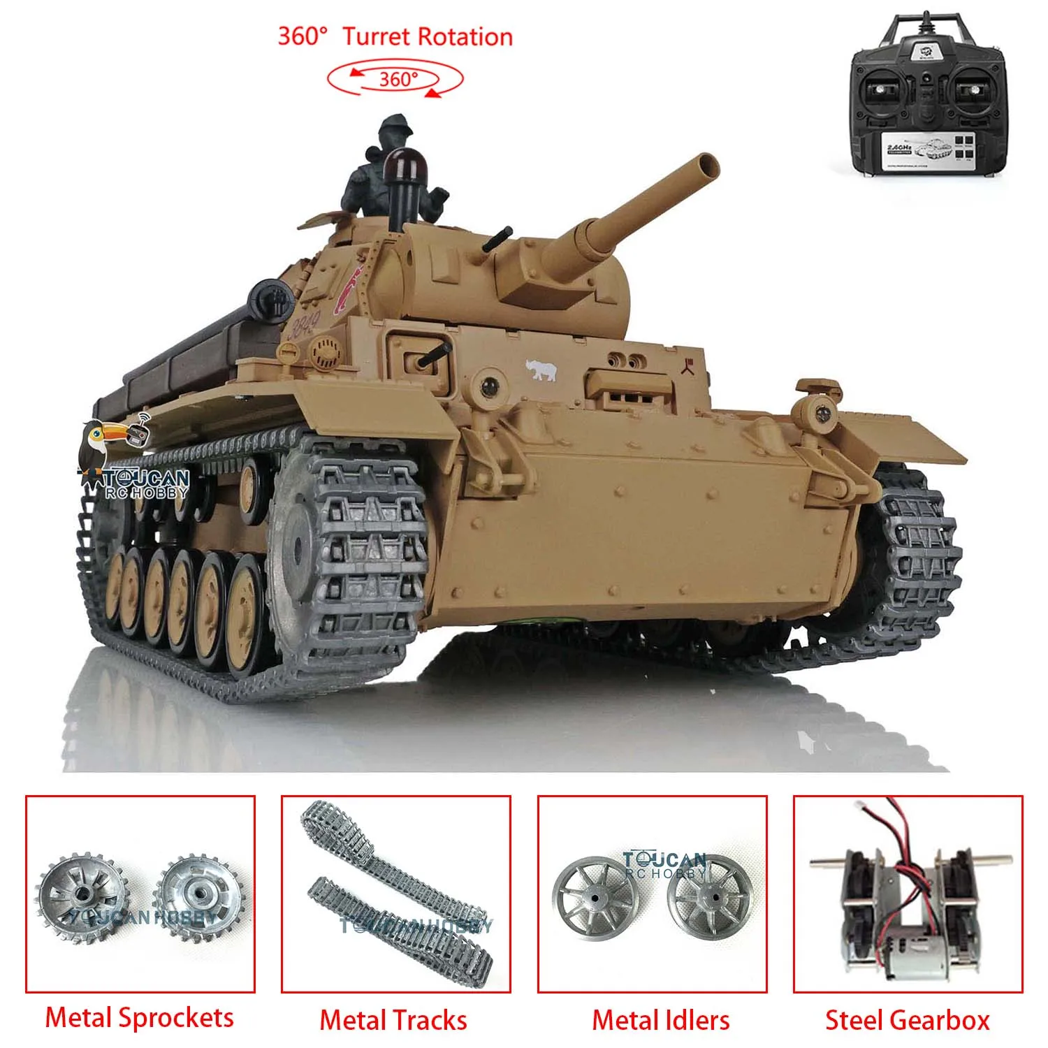 | 프로 베르 헹롱 투칸 1/16 7.0 타이거 I RC 탱크 3818 FPV 카메라 배럴 리코일 메탈 트랙 휠 BB탄 에어소프트 IR 엔진 사운드 | |