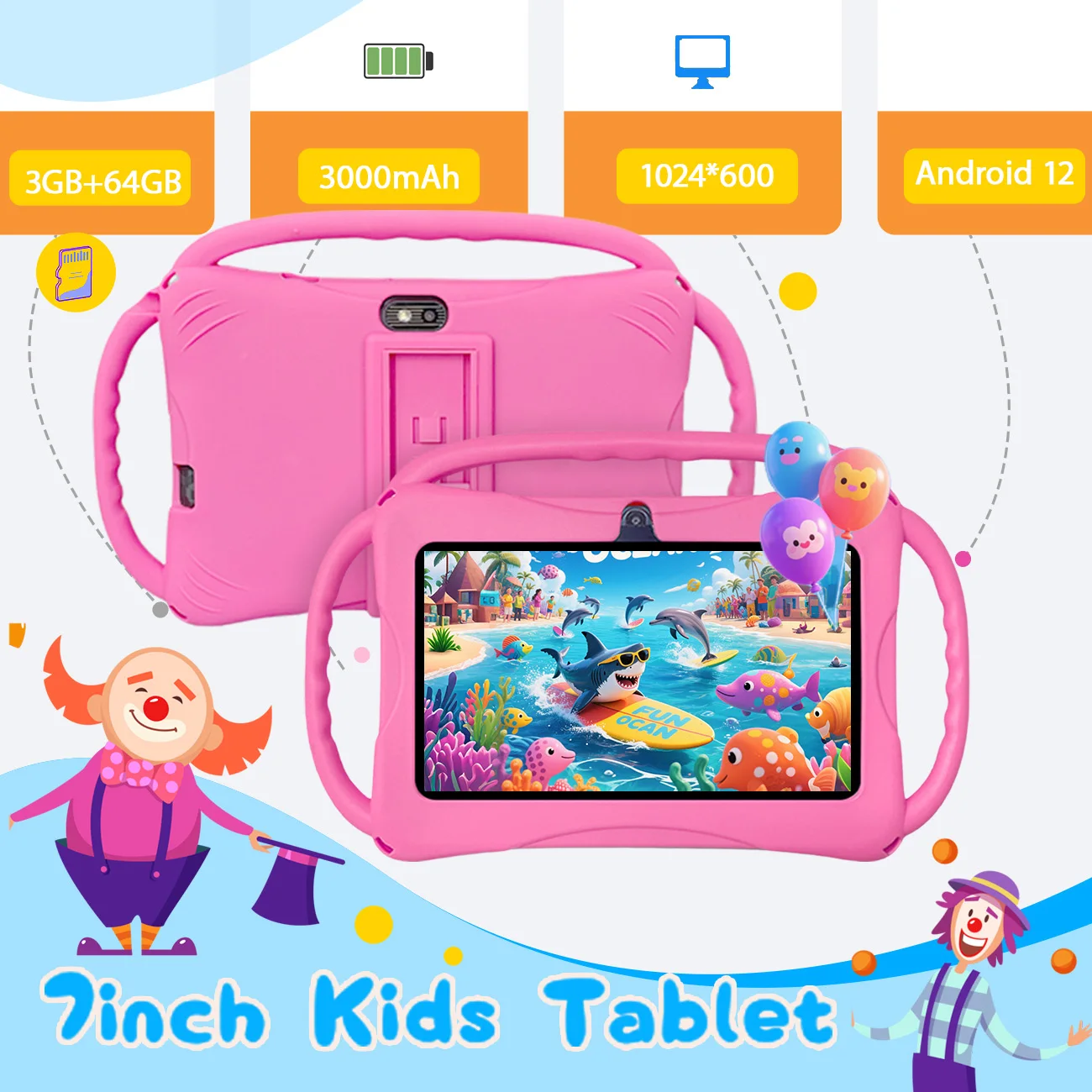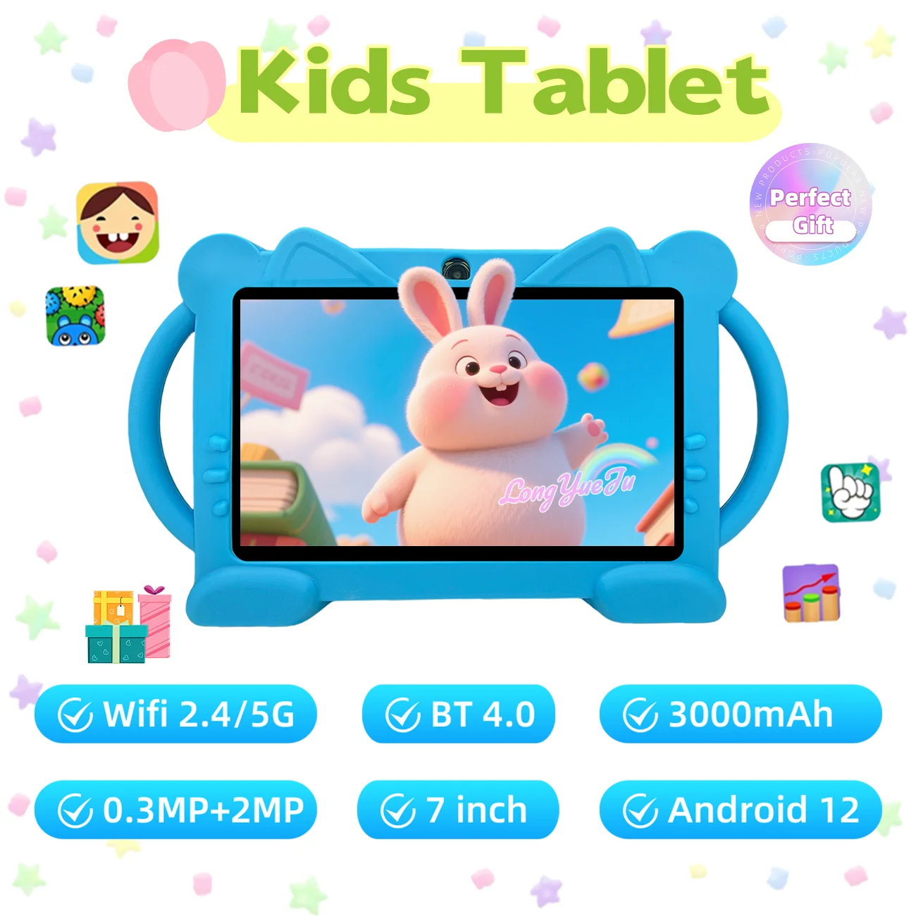 | 새로운 어린이용 태블릿 7인치 안드로이드 12 2GB 램 32GB 롬 1024 x 600 IPS HD 화면 와이파이 블루투스 듀얼 카메라 학부모 관리 기능 | |
