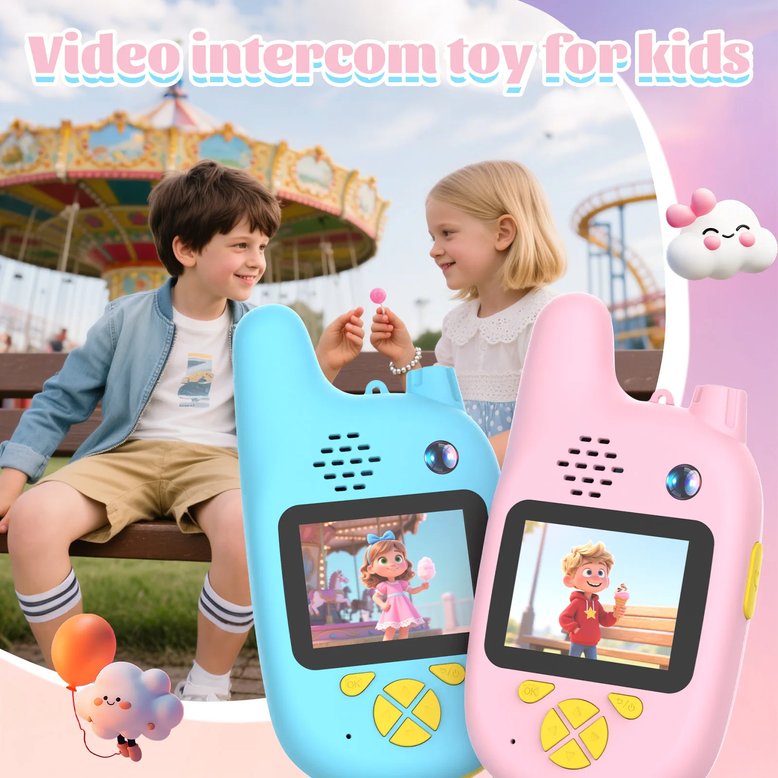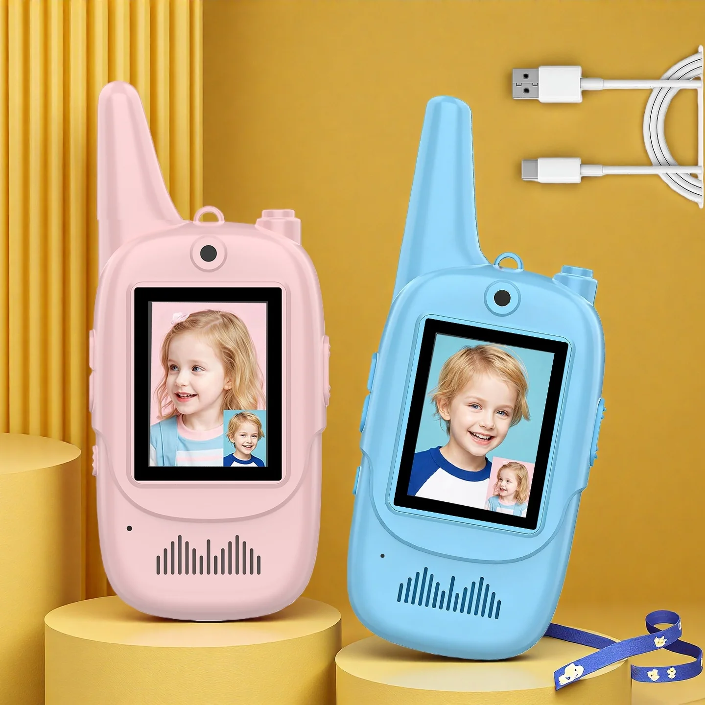 | 어린이용 비디오 스크린 무전기 2종 세트, 충전식 용 장난감, 고화질 카메라 및 음성 변조 기능 포함 | |
