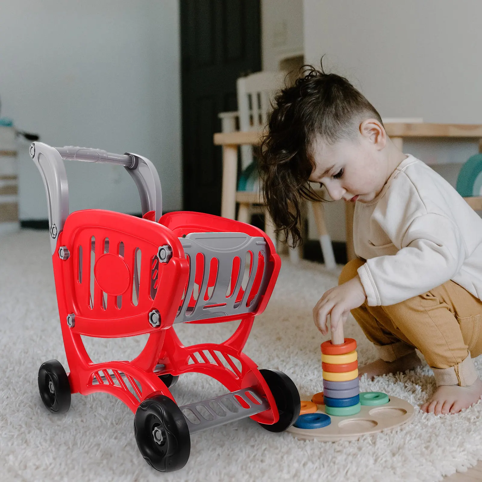 | 귀여운 미니 쇼핑 카트 보관 바구니 데스크탑 정리함 내구성 있는 금속 플라스틱 사무용품 홀더 (펜, 화장품, 소품용) | |