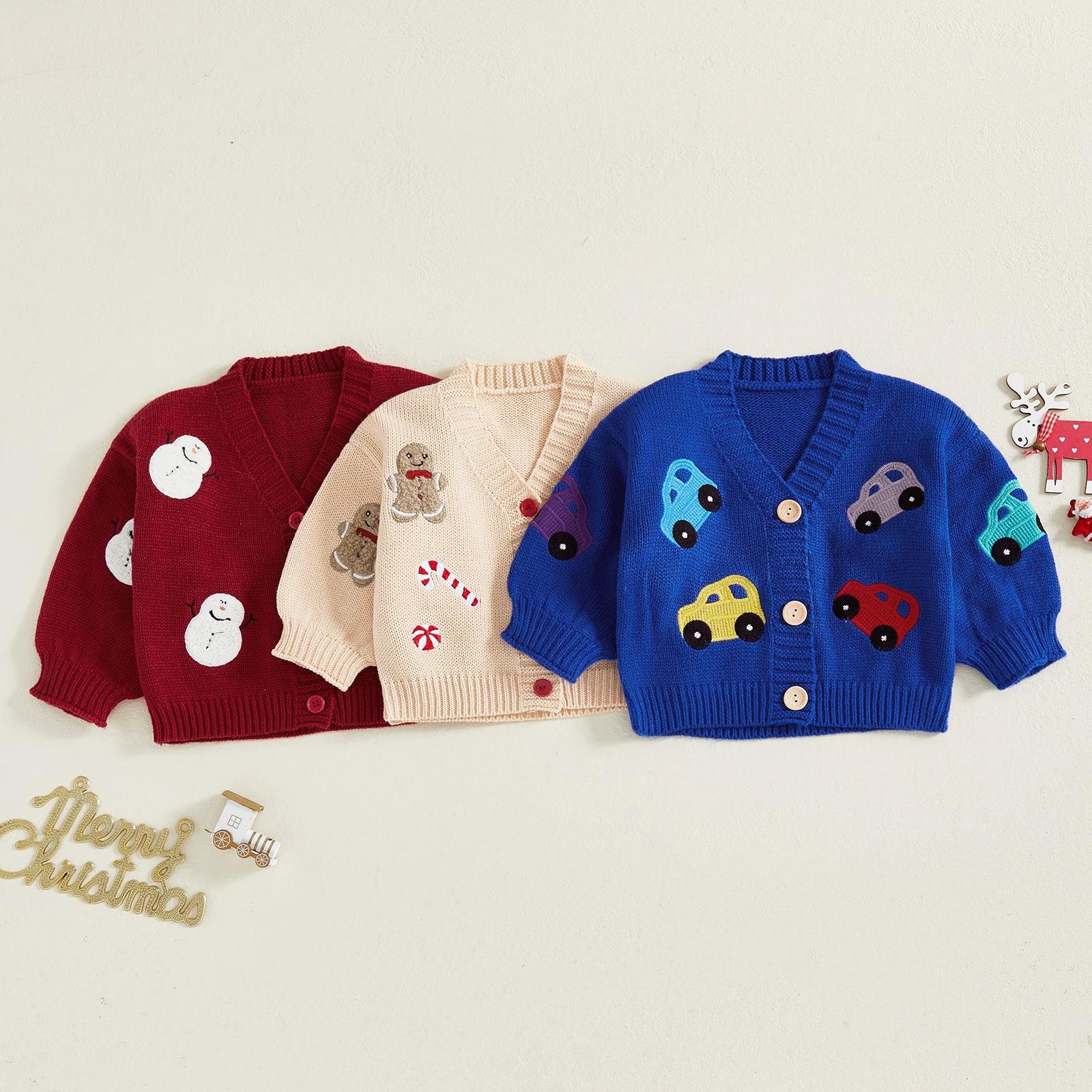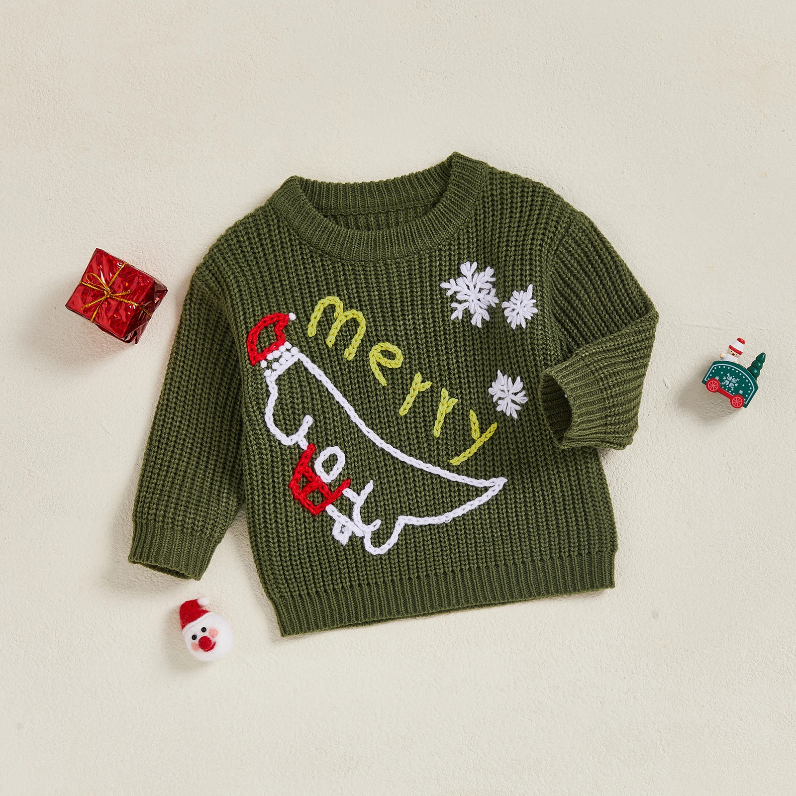 | 소녀 소년을 위한 크리스마스 스웨터 펠트 볼 장식이 있는 긴 소매 크루넥 니트 풀오버 탑 | |