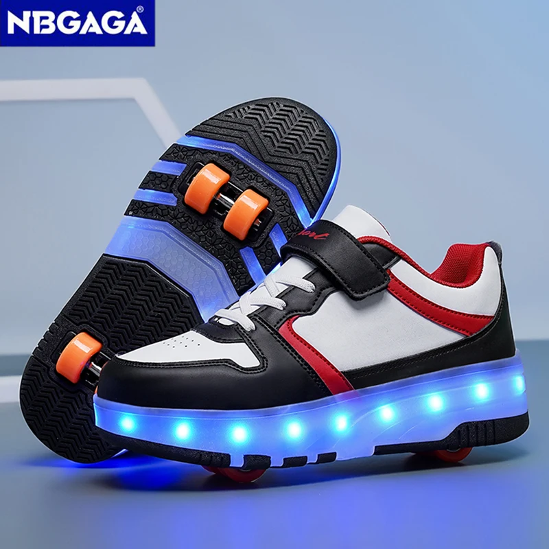 용 LED 라이트 스니커즈 하이탑 남아 플랫폼 슬립온 신발 아동용 봄 니트 양말 스니커즈 야광 운동화