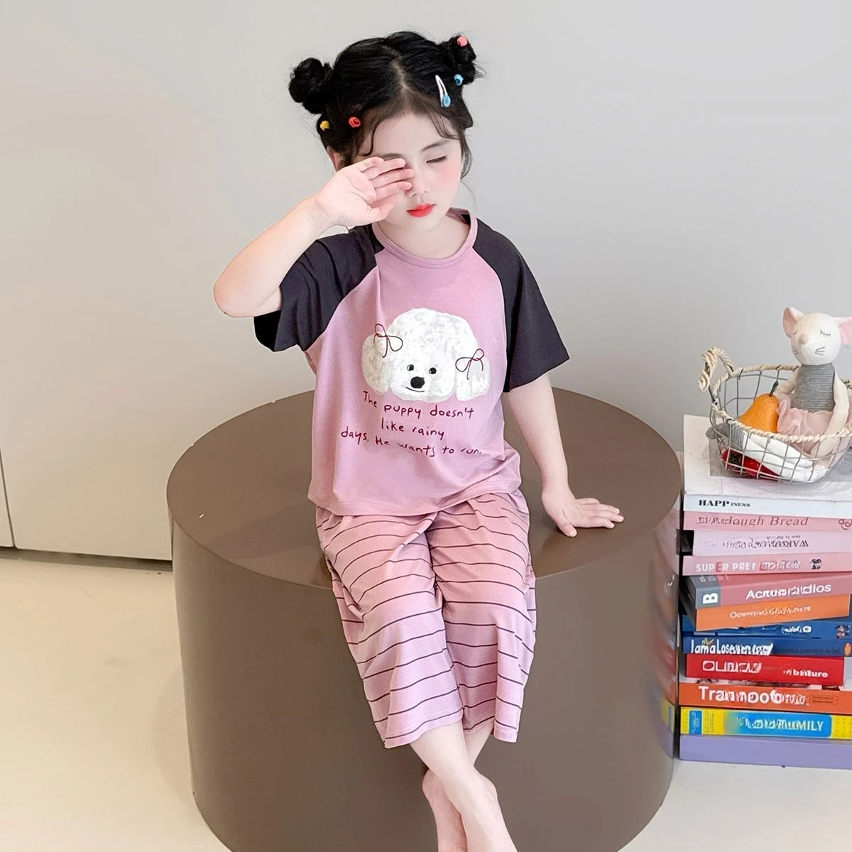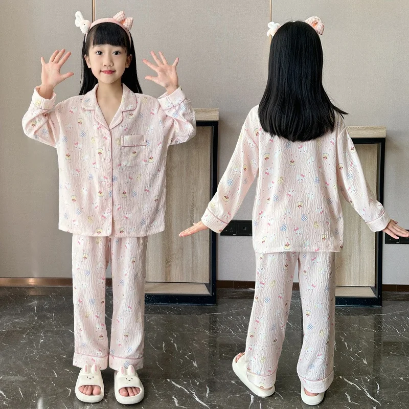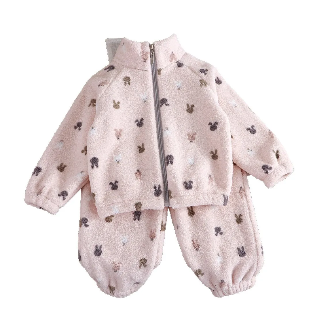 | 어린이 플란넬 잠옷, 여아 플러스 플리스 가디건, 따뜻한 산호 플리스, 가정 세트 세트, 가을 및 겨울 | |