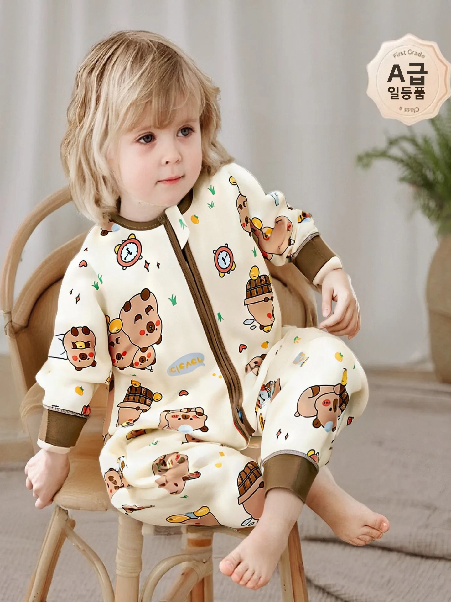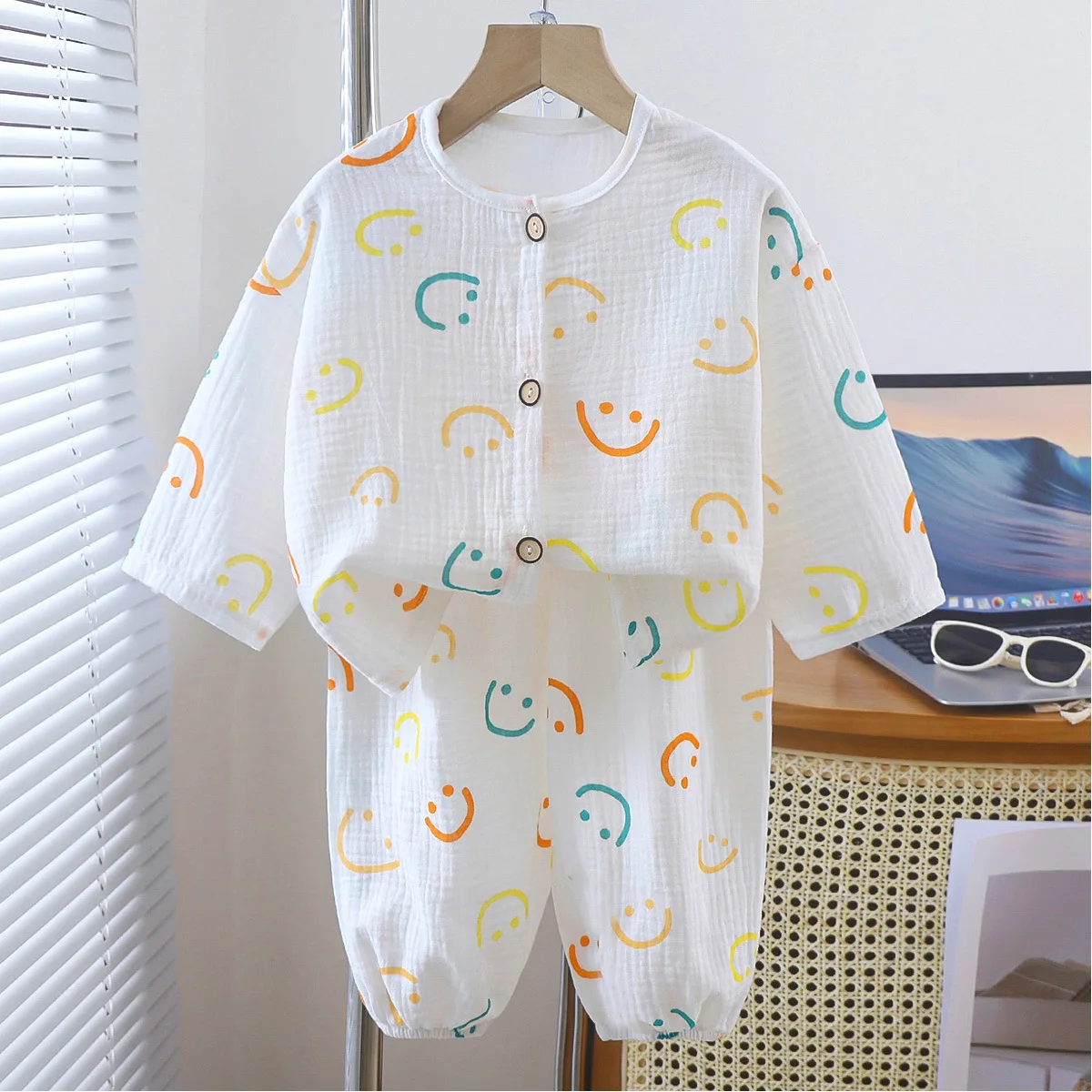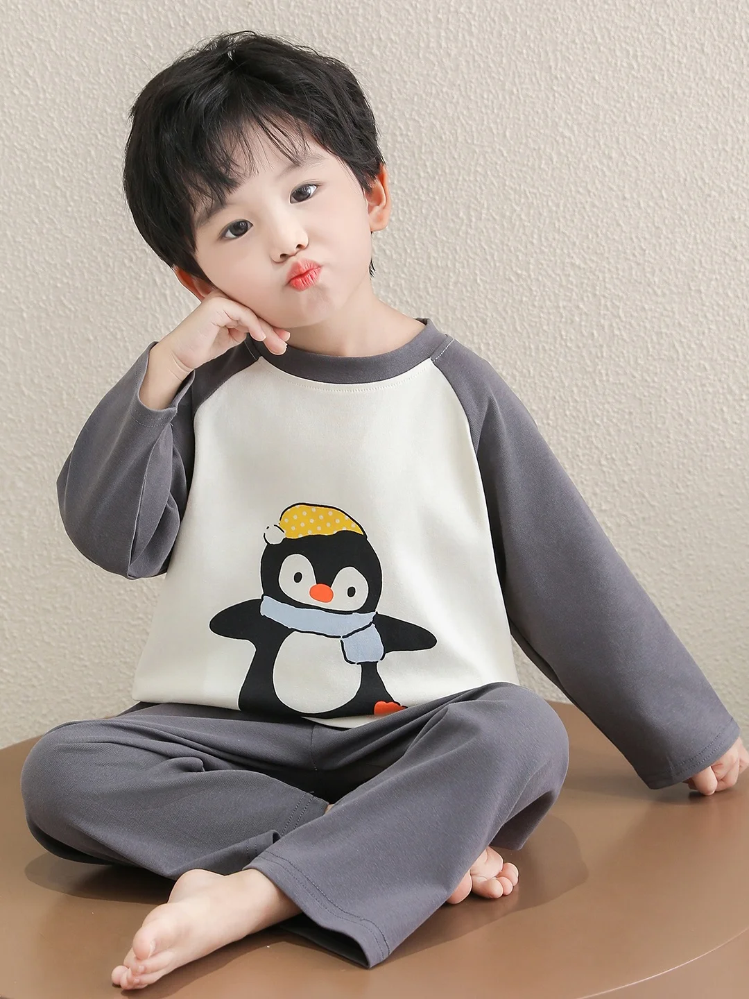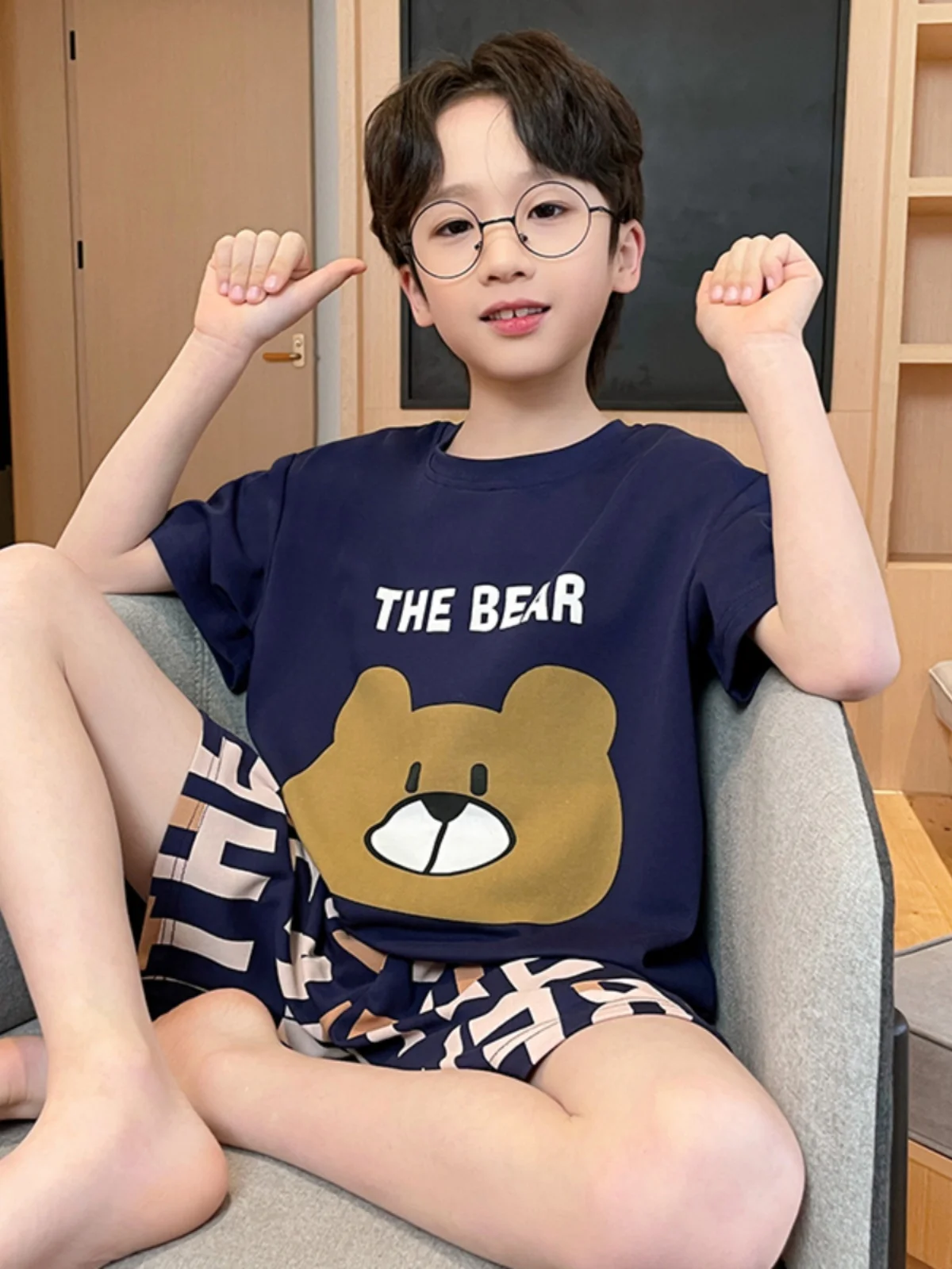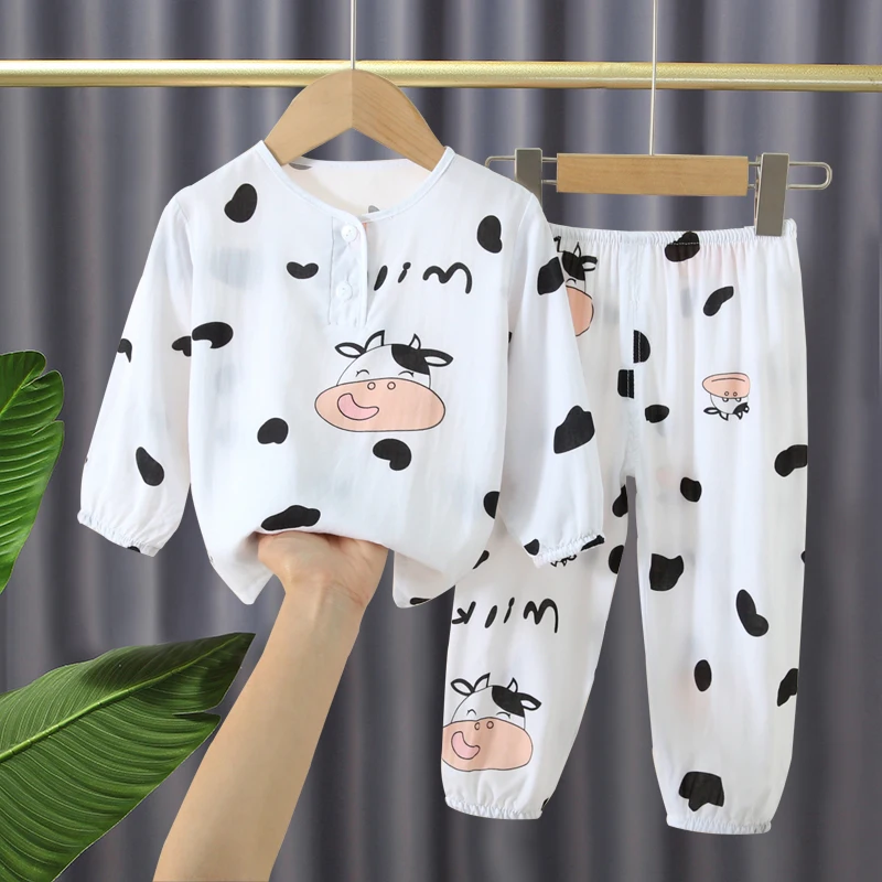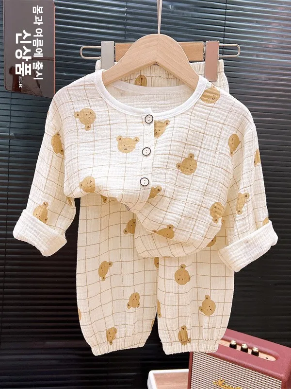 | 아동용 봄 가을 긴팔 카라 오픈 가디건 잠옷 세트 남아용 편안한 면 폴리에스터 홈웨어 | |