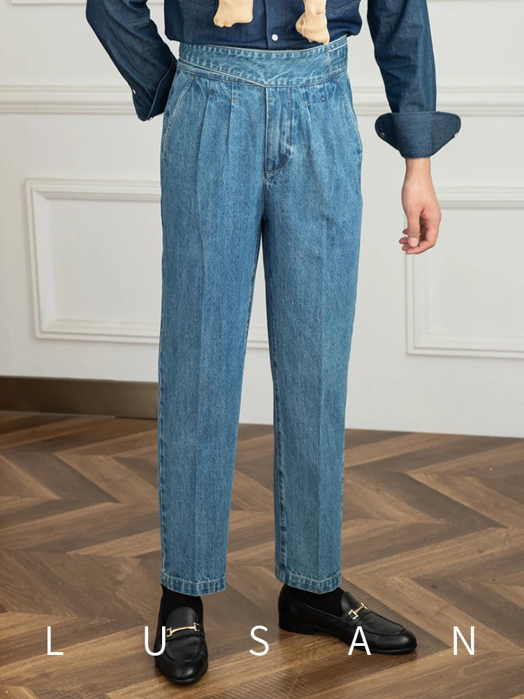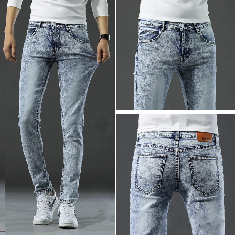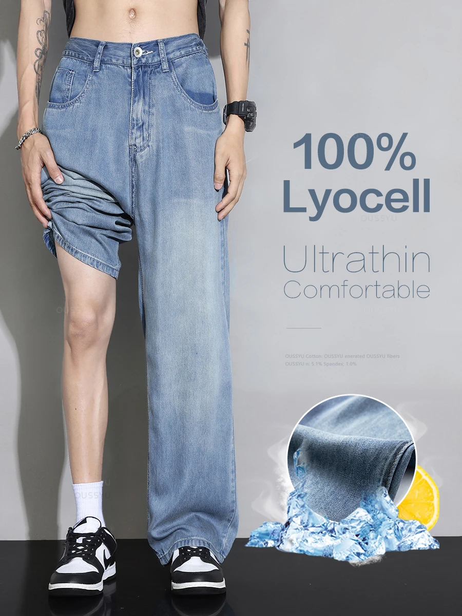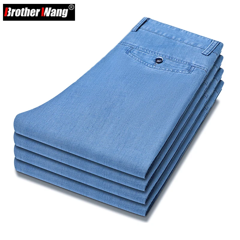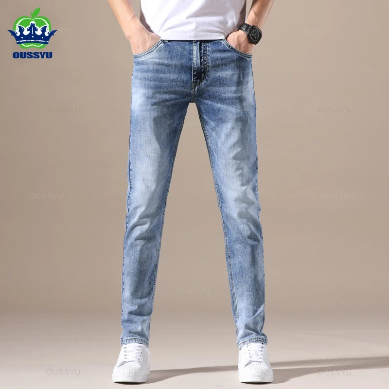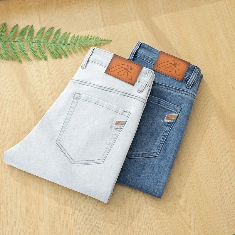 여름 얇은 신축성 있는 허리밴드 루즈핏 5인치 남성용 청반바지 패셔너블 캐주얼 스트레이트 레그 청반바지 청소년용