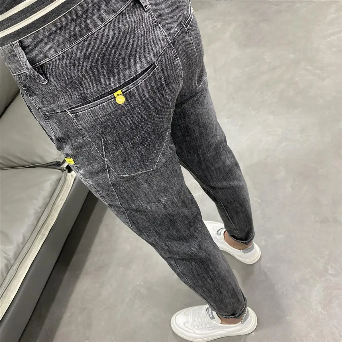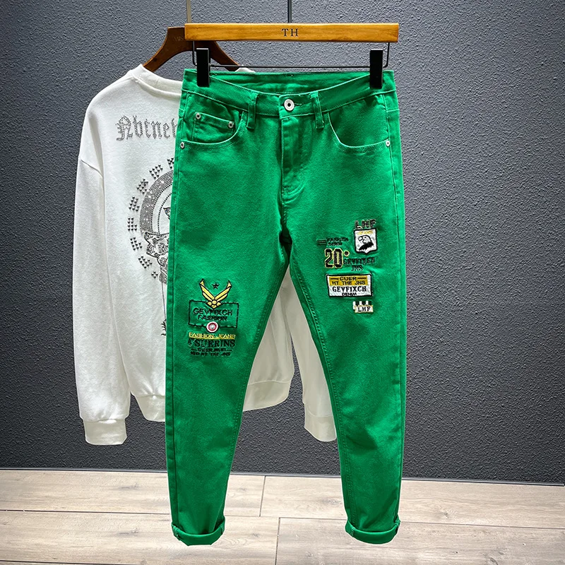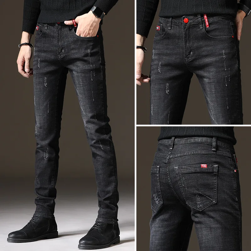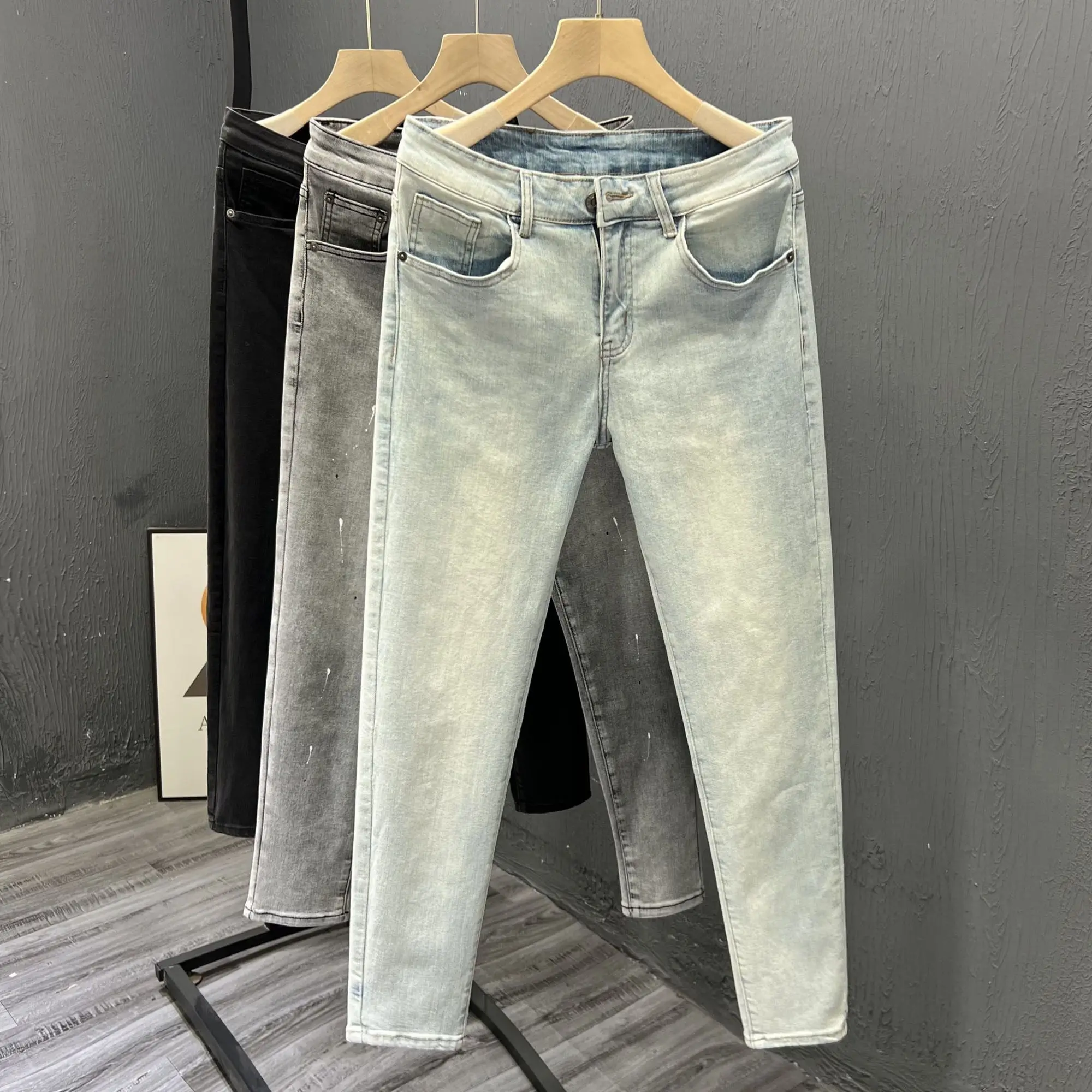 여름 얇은 신축성 있는 허리밴드 루즈핏 5인치 남성용 청반바지 패셔너블 캐주얼 스트레이트 레그 청반바지 청소년용