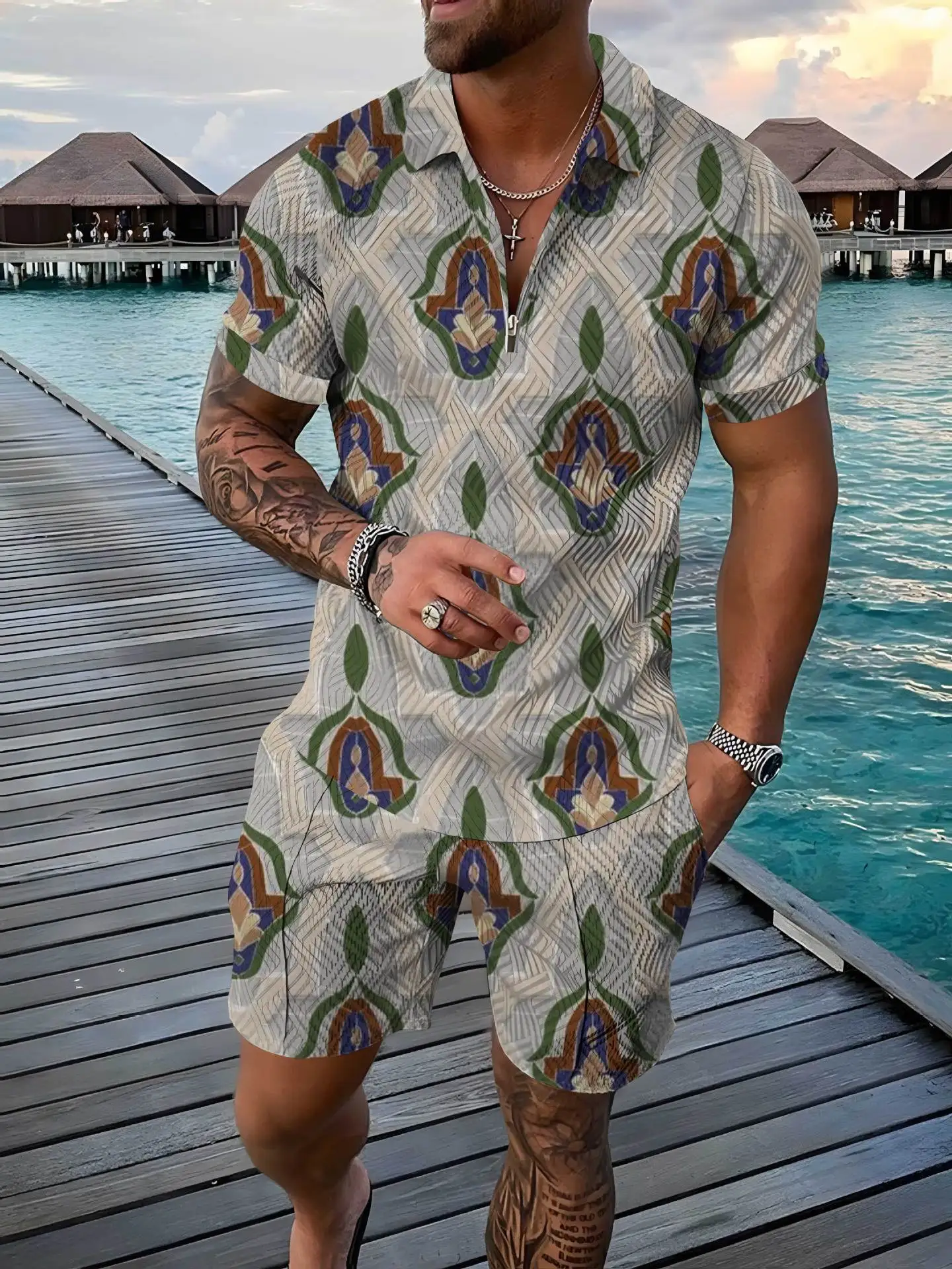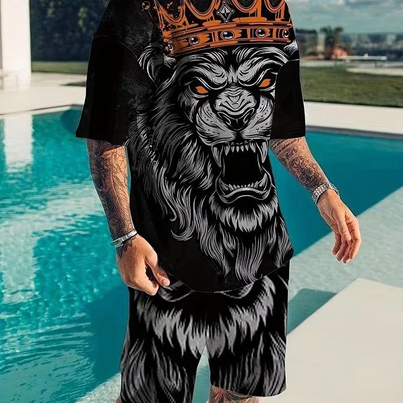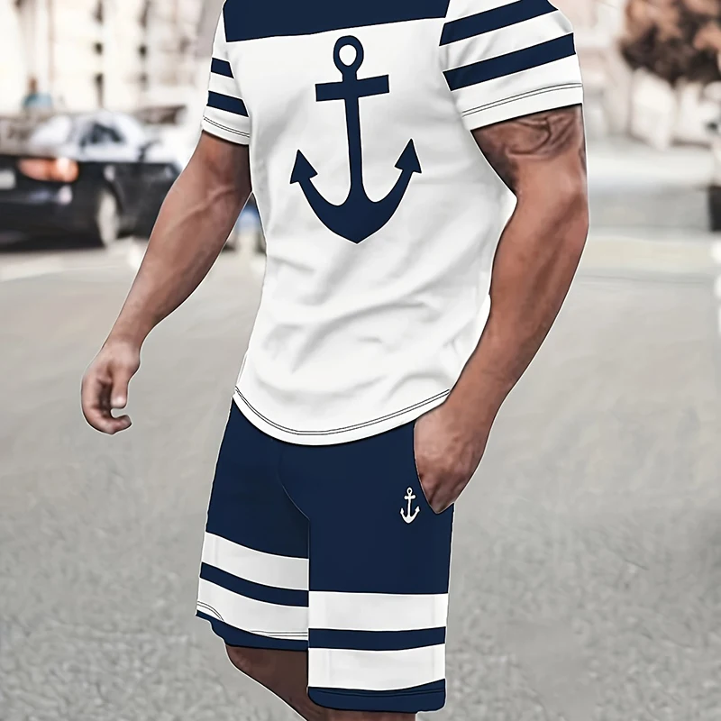 남성용 레터 프린팅 풀오버 반팔 라운드넥 티셔츠, 하이웨이스트 포켓 반바지, 영국 스타일 세트, 여름 의류