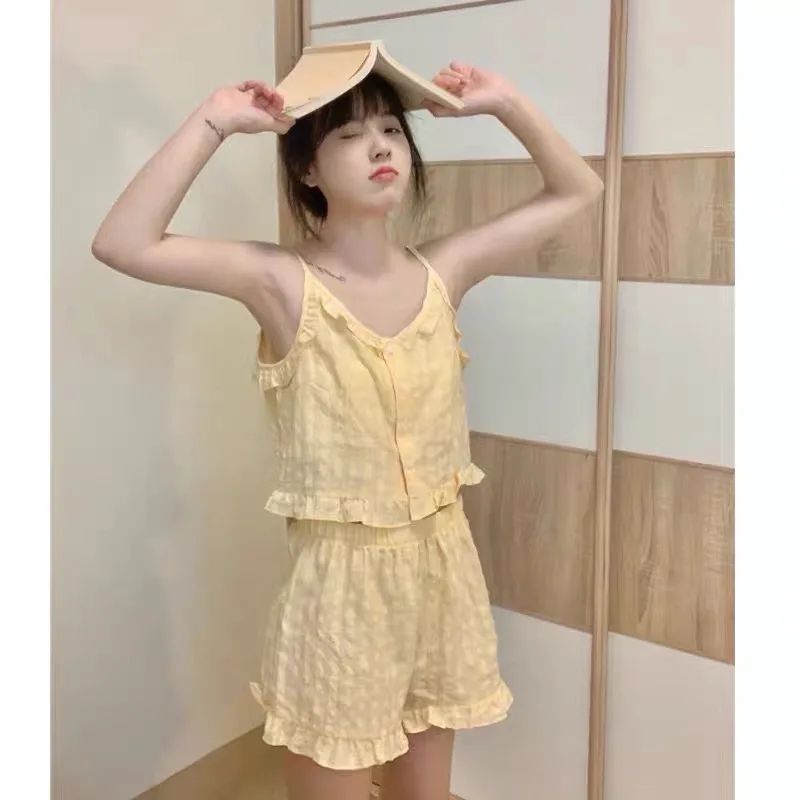 여성용 파자마 세트, 가슴 패드, 코튼 스위트 스트랩, 오픈 가디건, 긴 바지, 홈웨어, 용수철 가을, 6535
