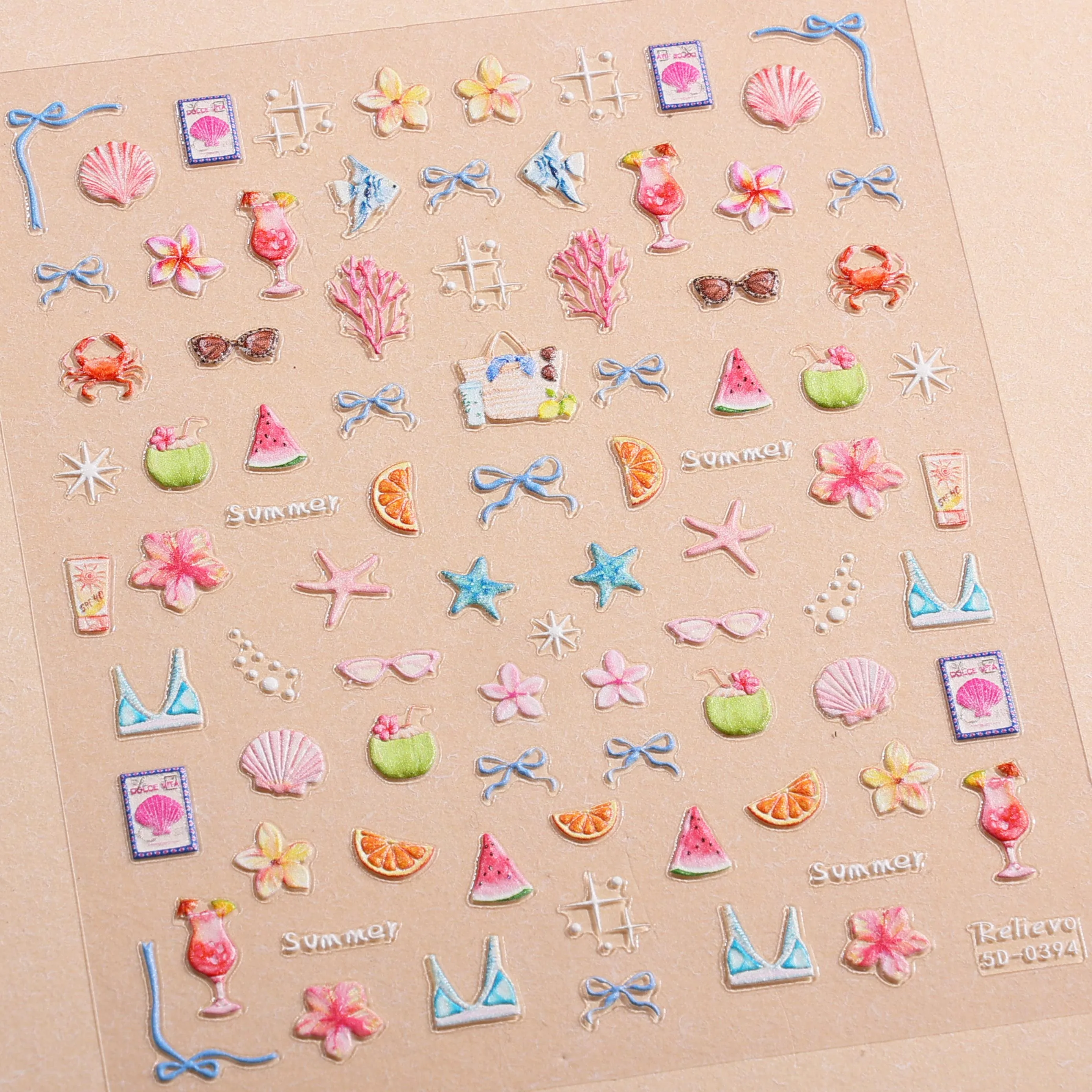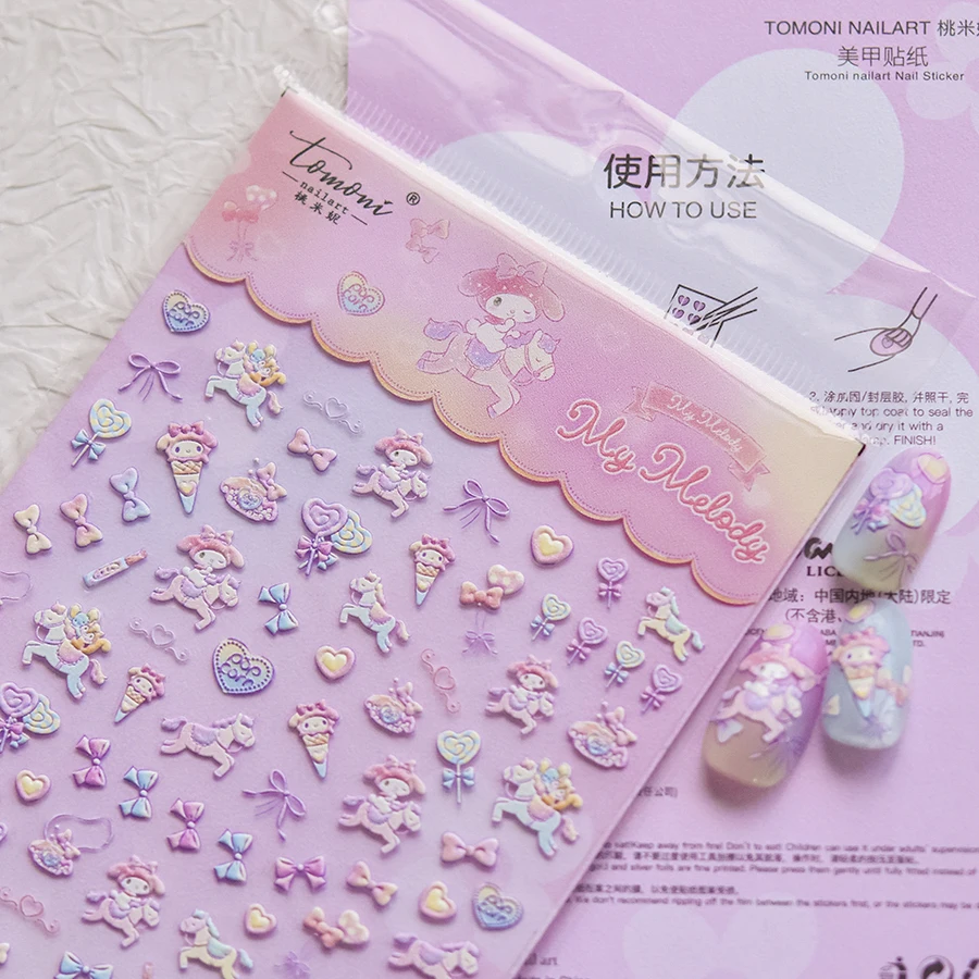 | 2개/세트 여름 태닝 헬로키티 5D 네일 스티커 엠보싱 Y2K 카와이 머메이드 헬로키티 네일 데칼 휴가 스타일 매니큐어 | |