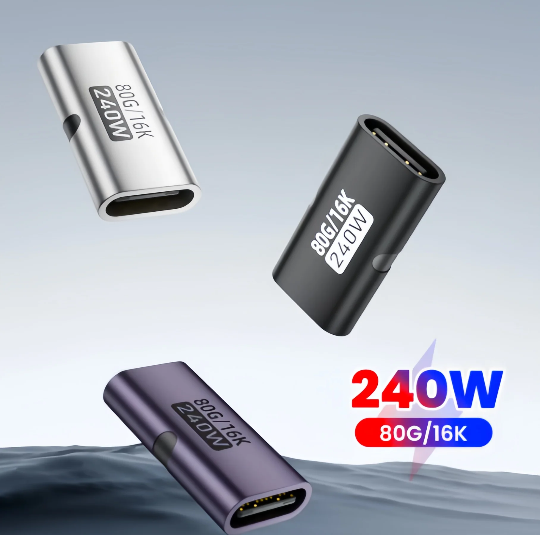 | USB C 암-암 어댑터 PD 240W 80Gbps 16K 60Hz 비디오 - 썬더볼트 4/3 맥북 프로/에어 아이패드 USB-C 허브와 호환 | |