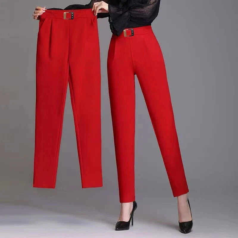 하이 웨이스트 심플 패션 캐주얼 팬츠 퓨어 컬러 여성 와이드 레그 롱 트라우저 레트로 슬리밍 여름 신상품