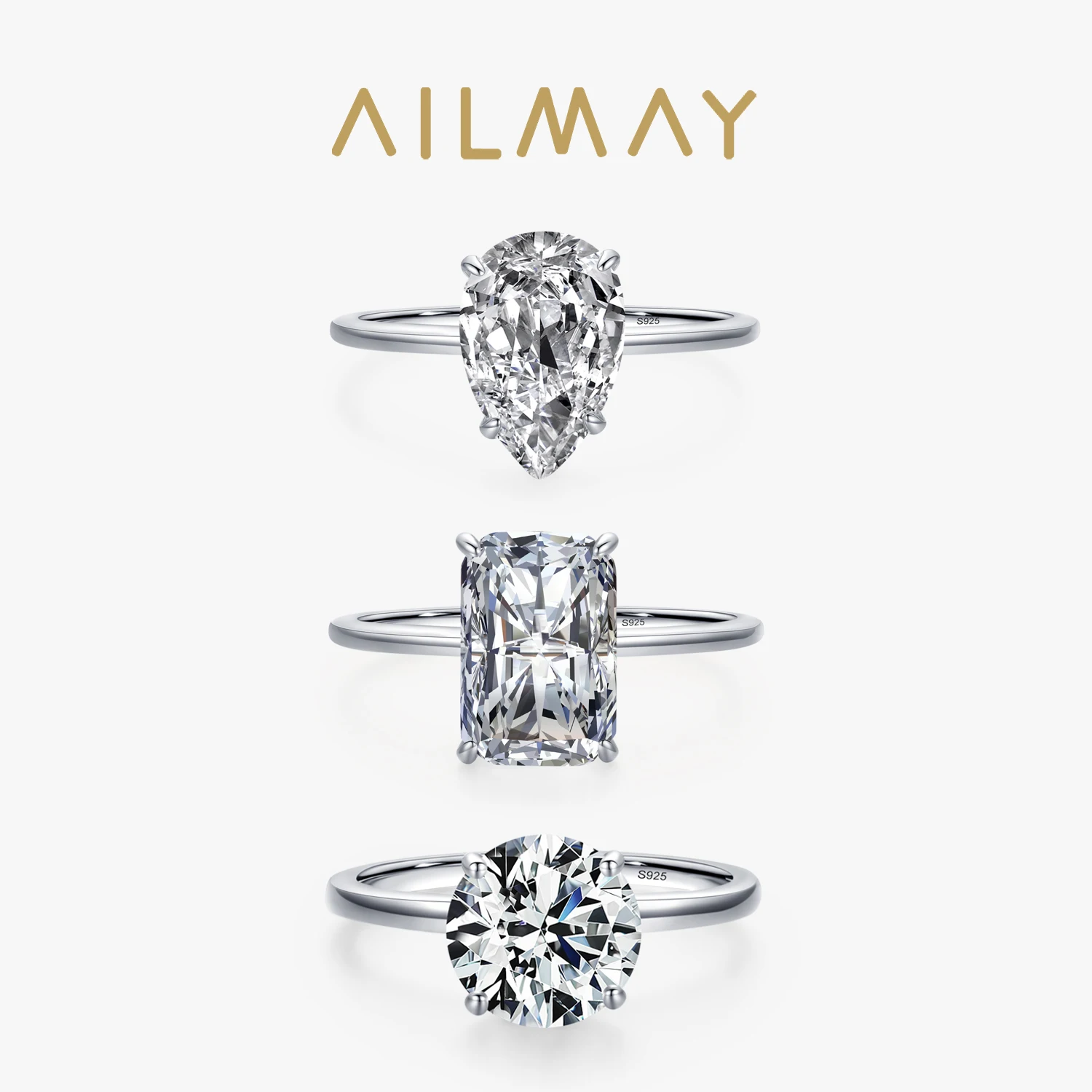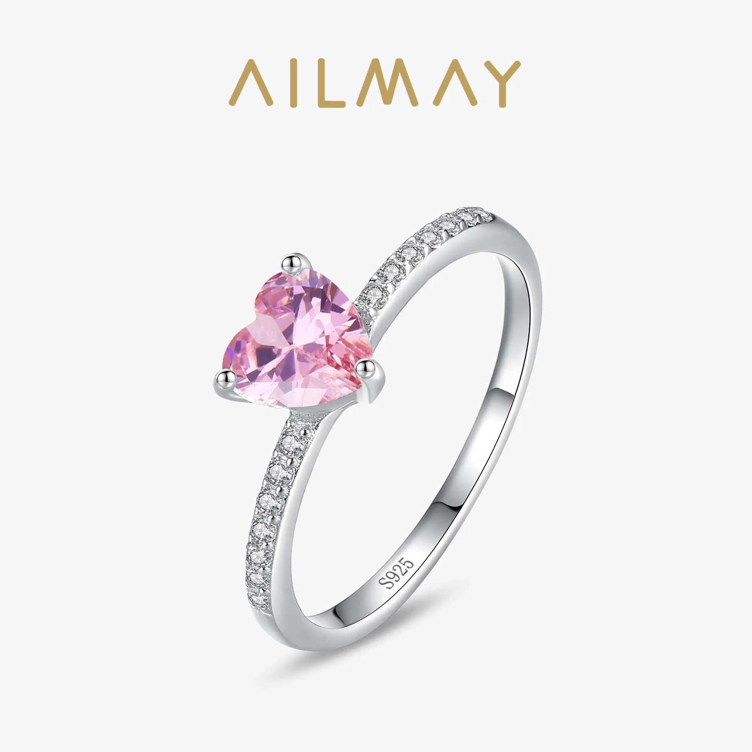 Ailmay 진짜 하트 여성을위한 패션 반짝 이는 CZ 손가락 반지 로맨틱 발렌타인 데이 주얼리