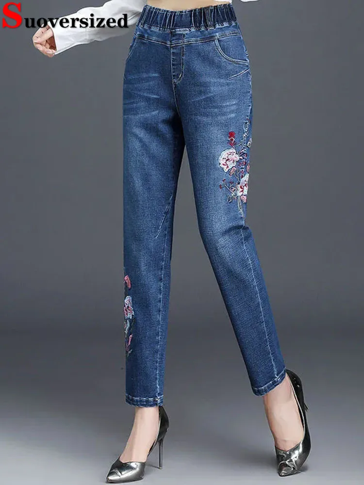 | 여성용 빈티지 자수 청바지, 캐주얼 꽃 데님 바지, 찢어진 바지, 2024 가을 패션 스타일 | |