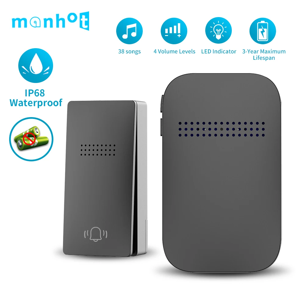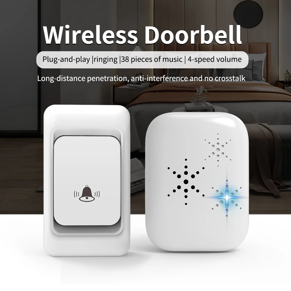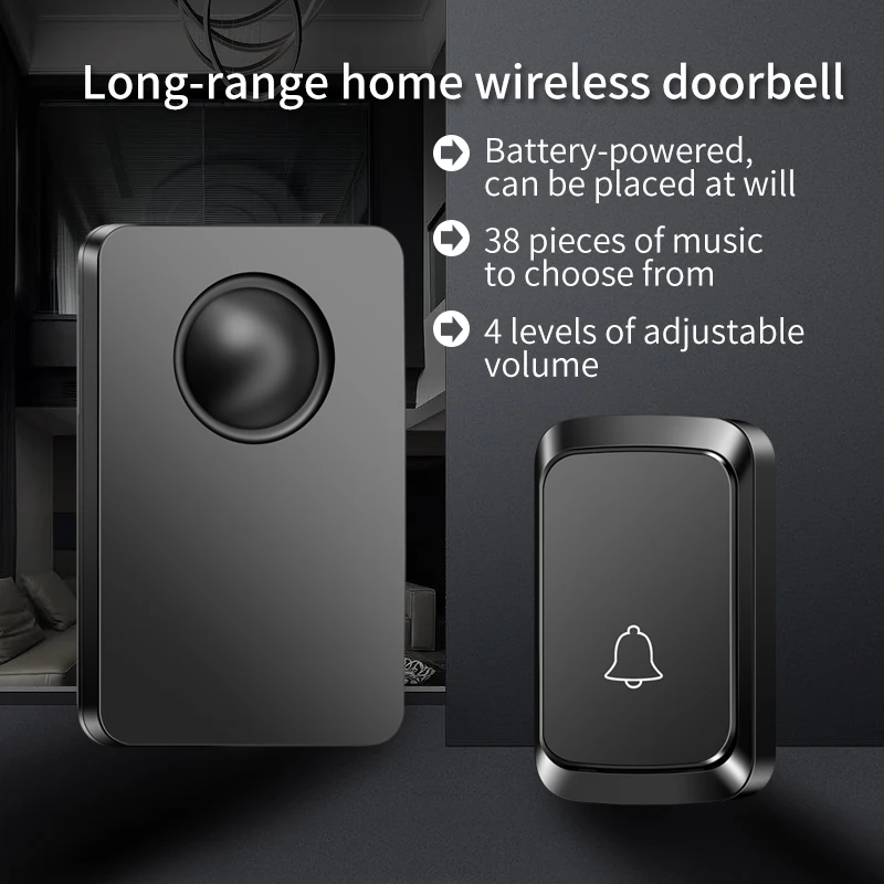 | 도어벨을 업그레이드하세요 36곡의 노래가 포함된 무선 리모컨, 가정이나 사무실에 적합하며, 와이어가 필요하지 않습니다. | |