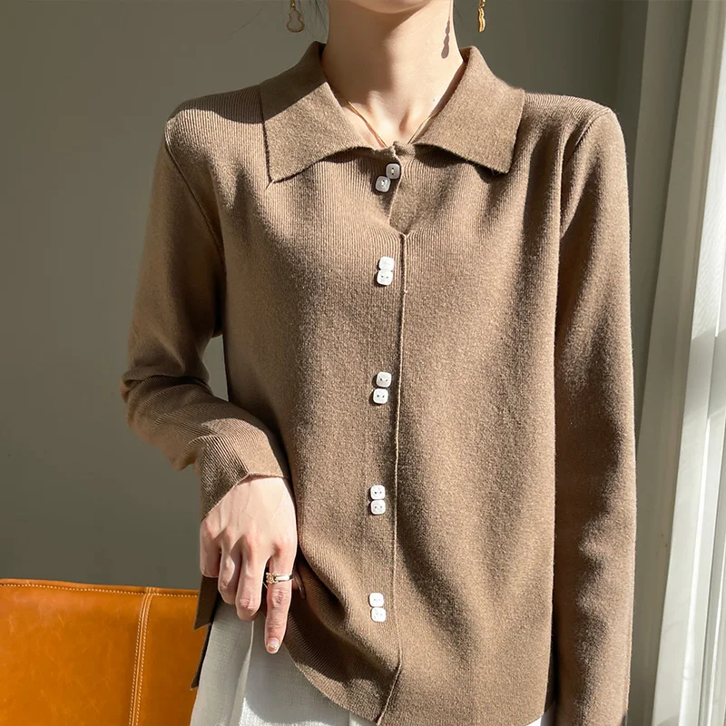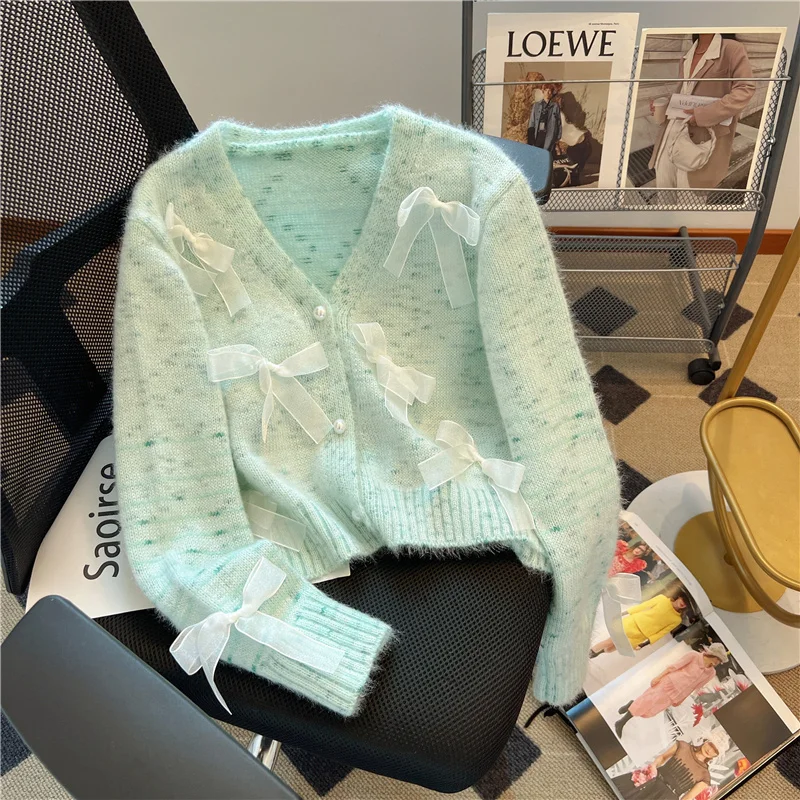 시크한 가을 겨울 부드럽고 아늑한 와이드 스트라이프 숏 스웨터 코트 디자인 감각 니치 오픈 가디건 탑 (젊은 여성용)
