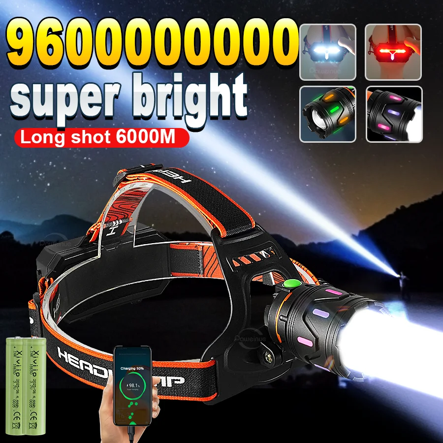 | 960000000LM 강력한 LED 헤드라이트 강력한 18650 충전식 헤드램프 8900M 장거리 낚시 사냥 헤드 랜턴 | |