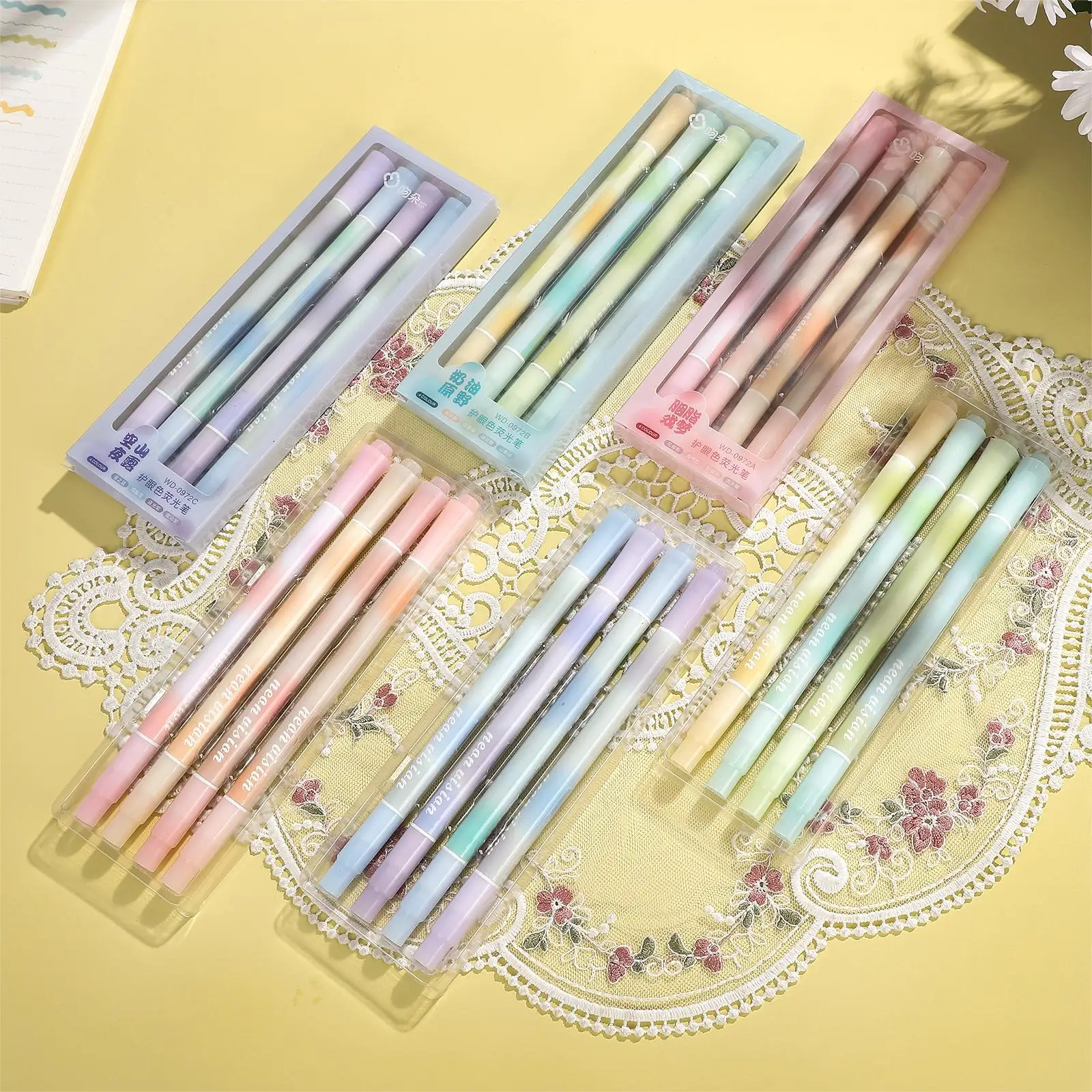 | 이중 귀여운 학교 마커 하이라이터 헤드 고정 형광 펜, 파스텔 용품, 컬러 미학 | |