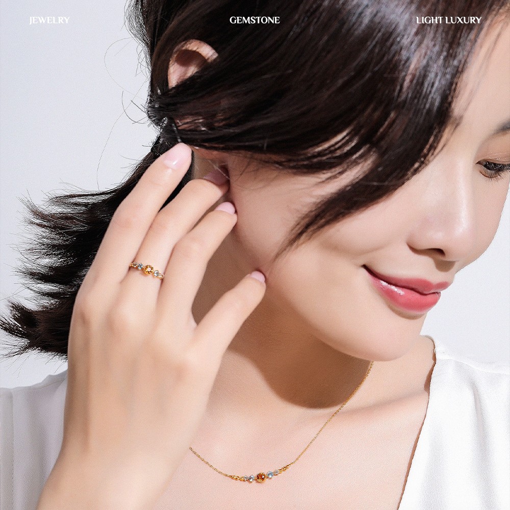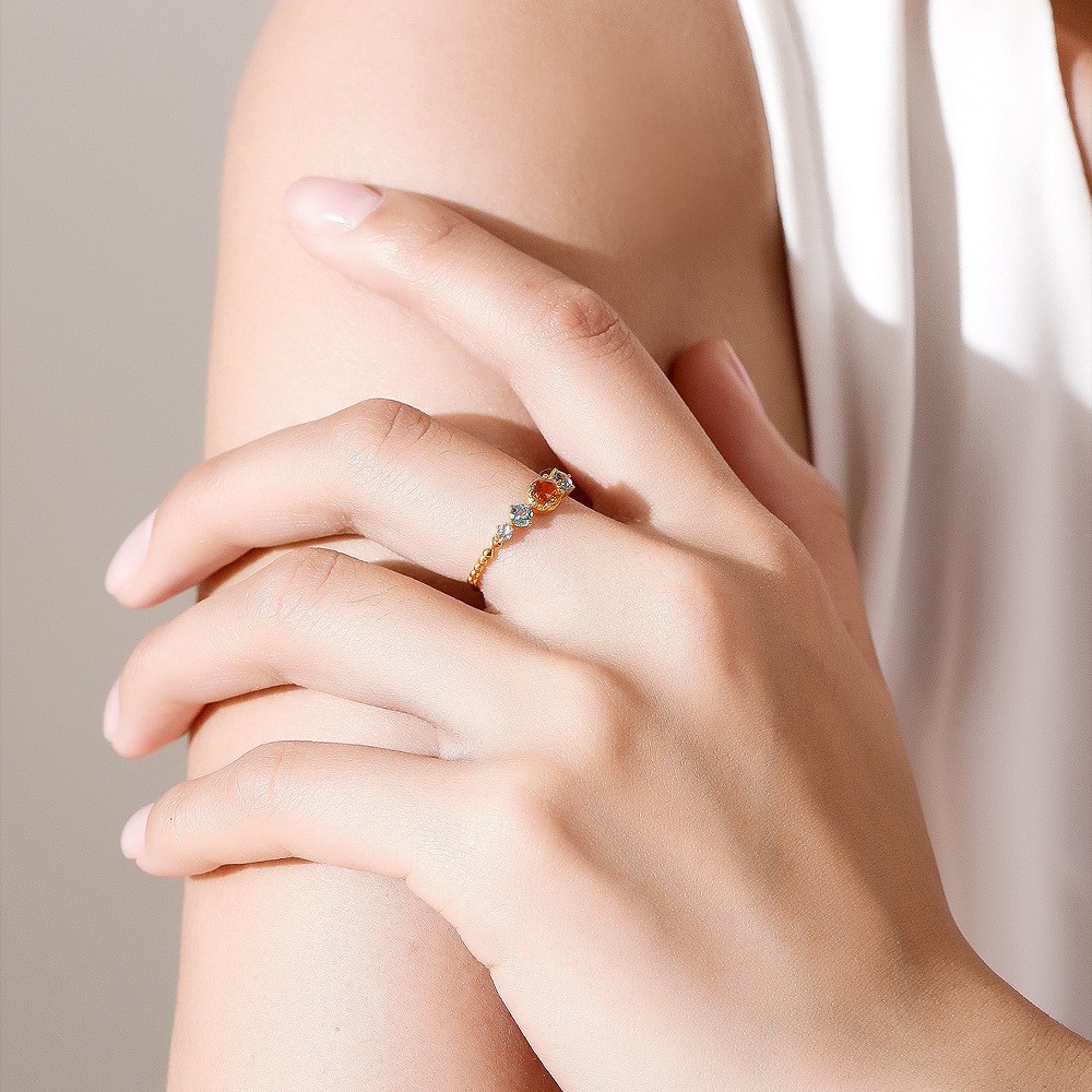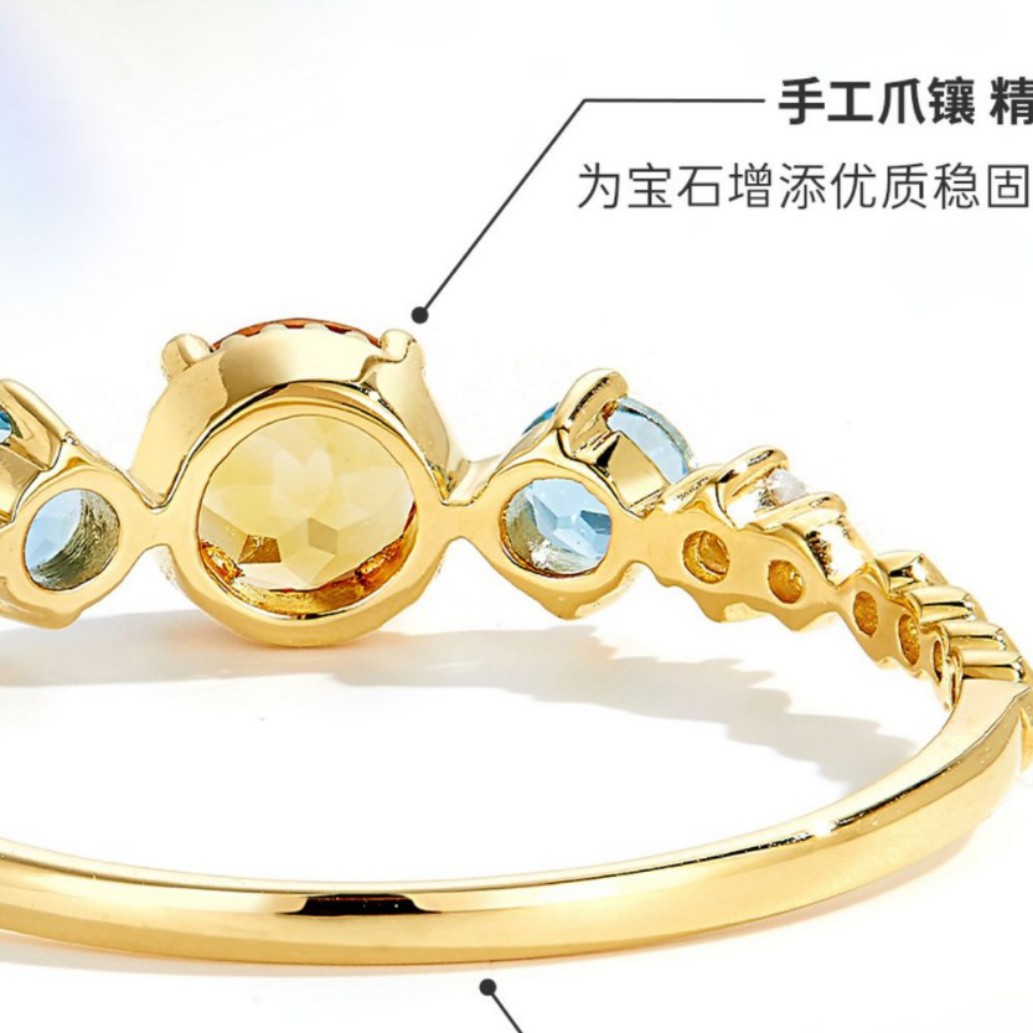 | "오렌지와 바다" 18K 골드 도금 높은 모조석 천연 반지 블루 토파즈 화려한 빛 럭셔리 다재다능한 여성 반지 | |