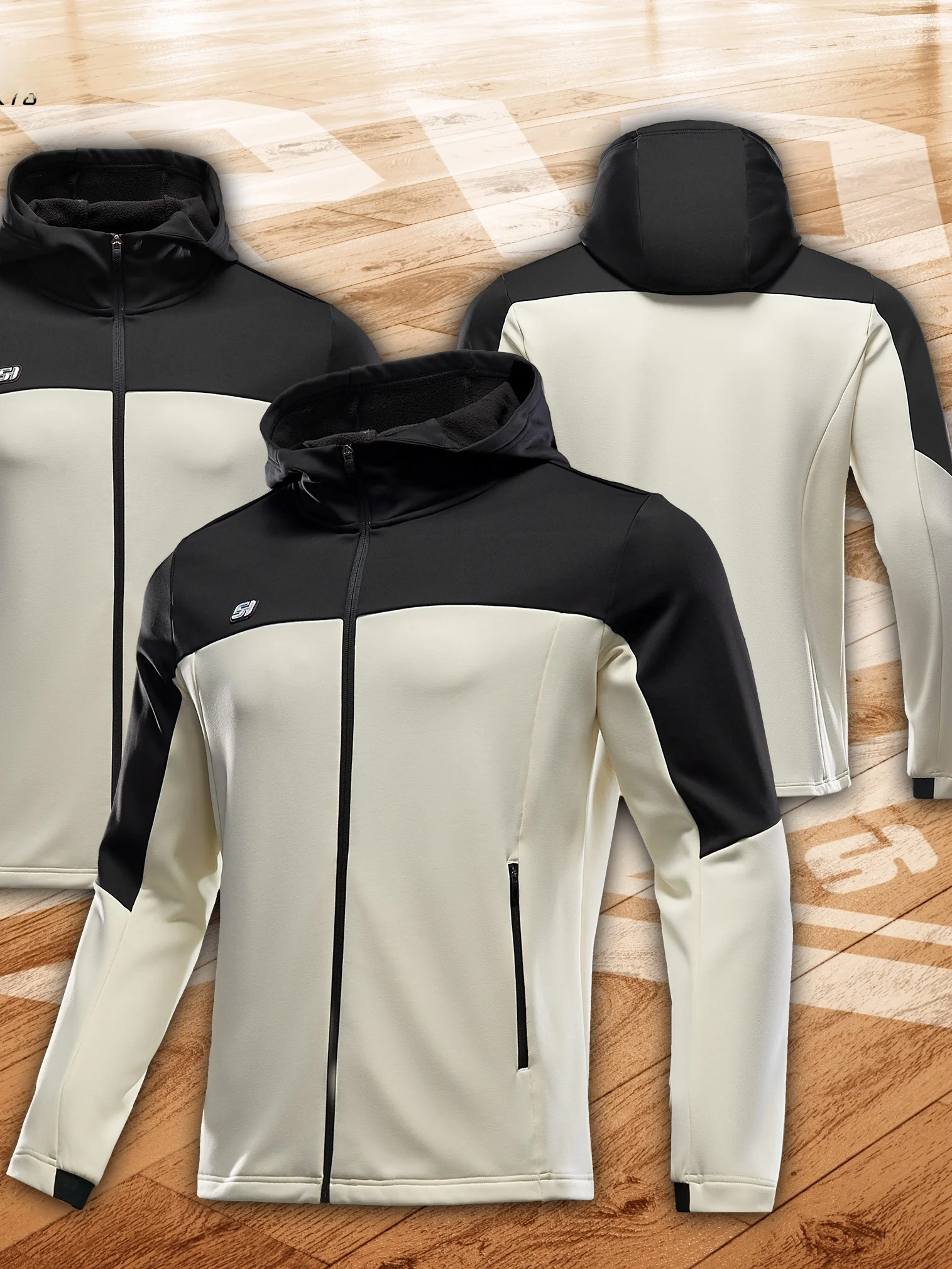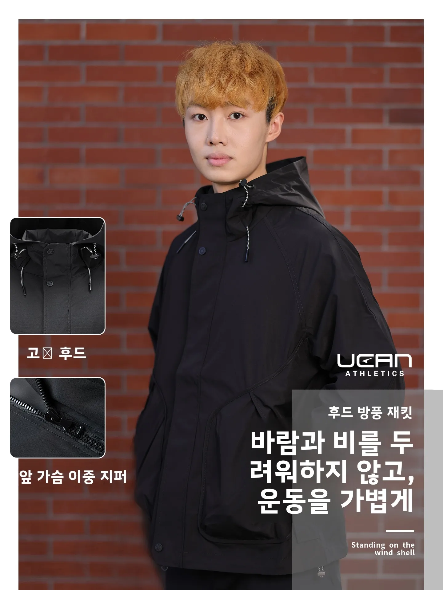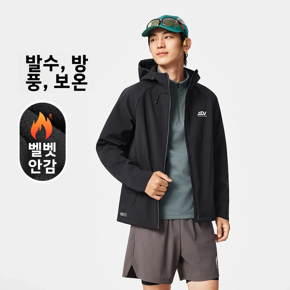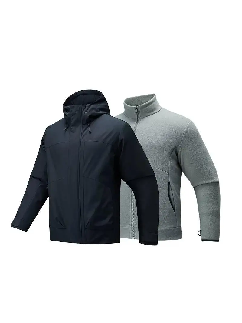 | 안타 남성용 두꺼운 스포츠 재킷 무불소 야외복 스탠다드 핏 후드 지퍼 잠금 방수 폴리에스터 섬유 | |