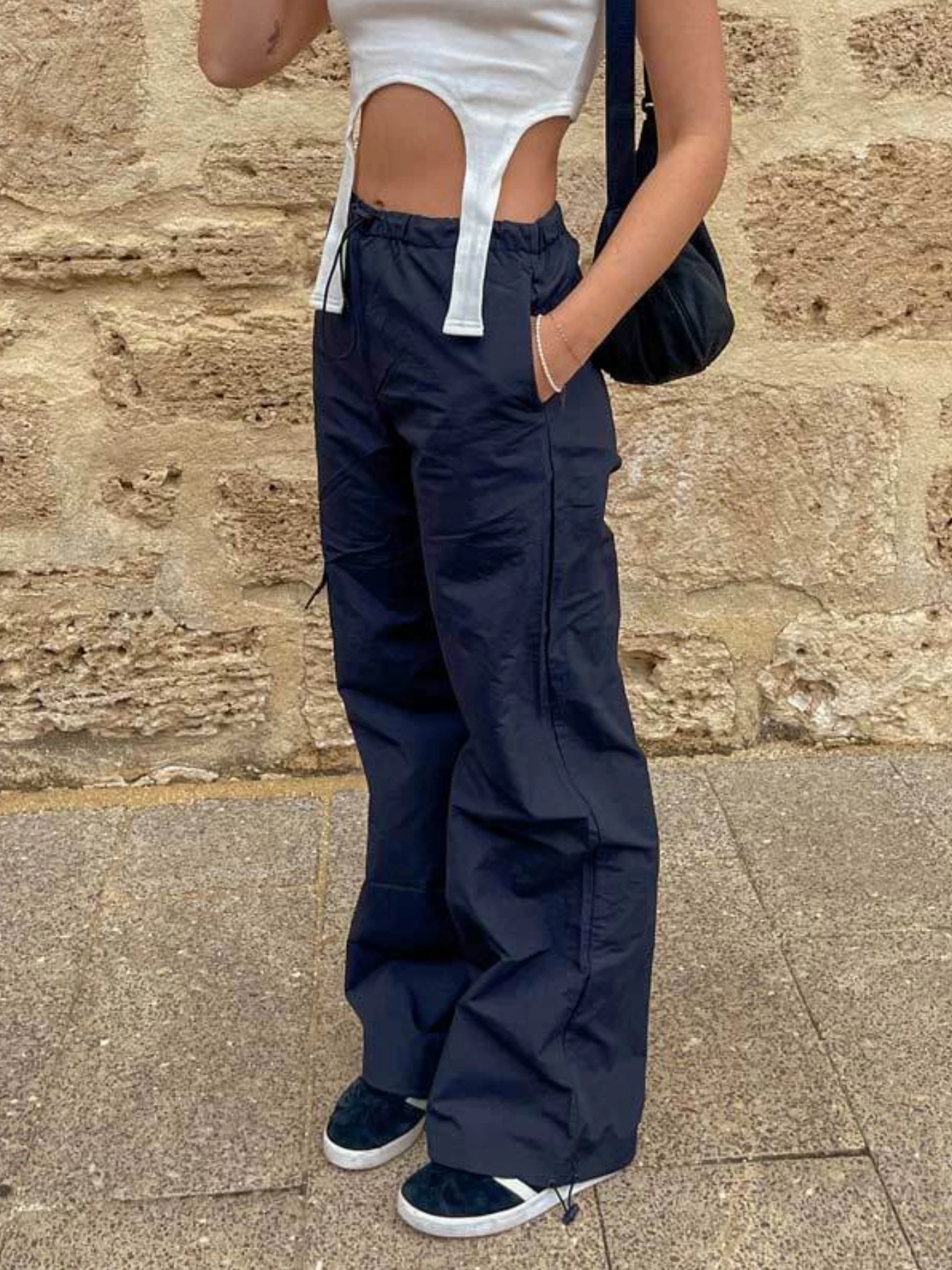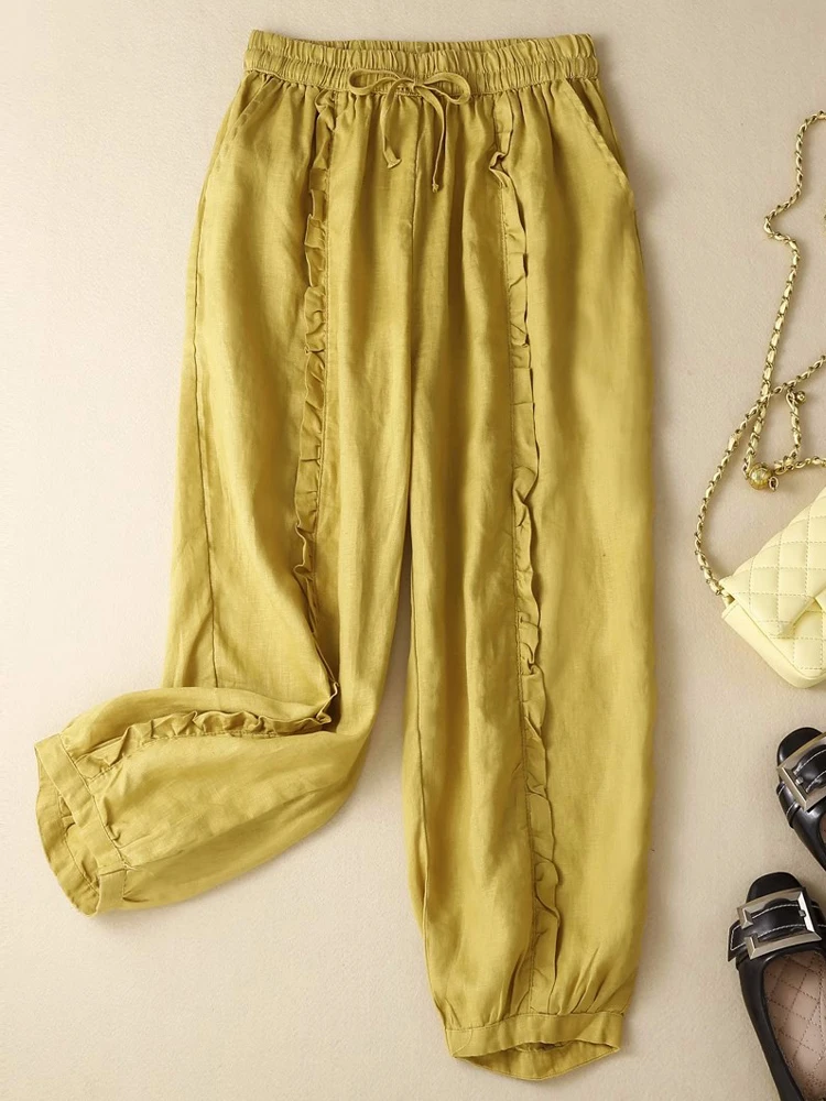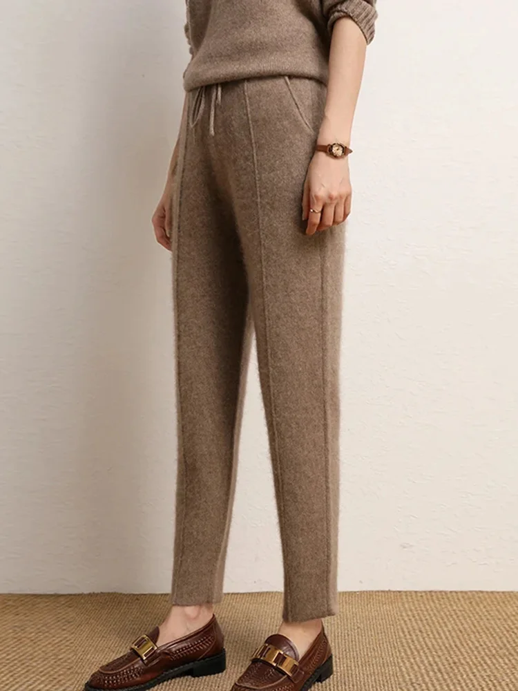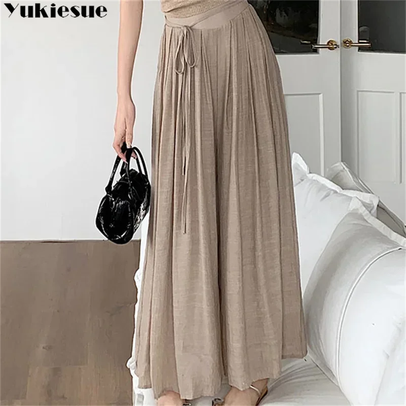 Maden 여성용 스트레이트 드로스트링 신축성 허리 스웻팬츠 와이드 레그 팬츠, 큰 주머니, 편안하고 통기성 있는 루즈 팬츠