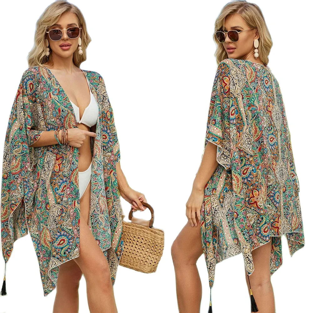 여성용 프린트 터키 카프탄 비키니 세트, 비치웨어 비키니 커버 업, 맥시 원피스 목욕 세트, 여름 복장
